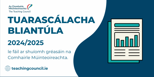 | A chara, Tá áthas orainn foilsiú ár dTuarascála Bliantúla do 2024/2025 a fhógairt, i na leagtar amach dul chun cinn na Comhairle le linn na tréimhse ón 28 Márta 2024 go dtí an 27 Márta 2025. Léiríonn tuarascáil na bliana seo ár dtiomantas leanúnach do na caighdeáin ghairmiúla is airde sa mhúinteoireacht a chaomhnú agus a chur chun cinn. Tá súil againn go mbeidh sí faisnéiseach agus suimiúil duit araon. |